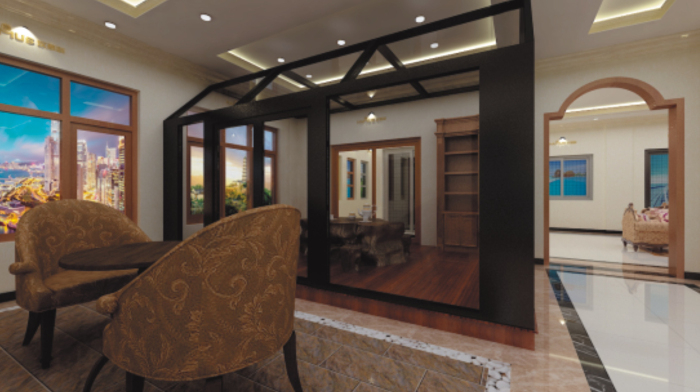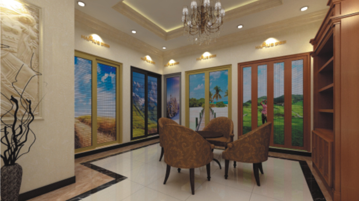 项目:SI终端店面设计项目介绍:展厅规划亮点,产品融入工作实景,工作生活中体会产品的应用,型材料头组成的文化背景墙,展示出德式设计的线条感与创意感,用重型门或者推拉门作为办公室之间的间隔墙,充分展示优势产品的同时,给客户真切体会到产品在生活中的实用效果与格调,外观局部装点以重复层叠形式,加强厚重感和品质感,产品局部增加雕刻装饰感。